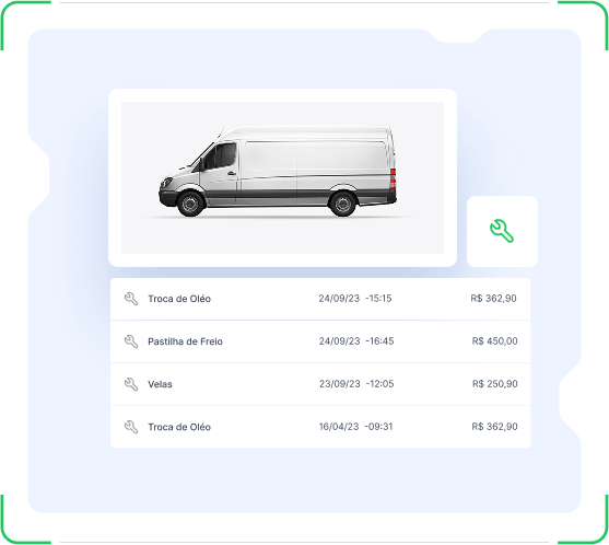 Cada manutenção realizada fica registrada no histórico do veículo, permitindo o controle detalhado de peças trocadas, valores gastos e datas dos serviços.