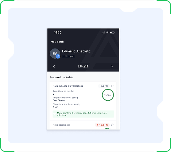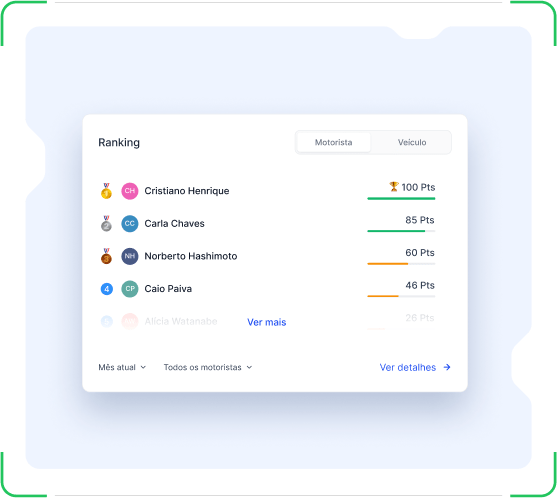 Com o ranking de motorista, o gestor acompanha o desempenho de cada profissional.