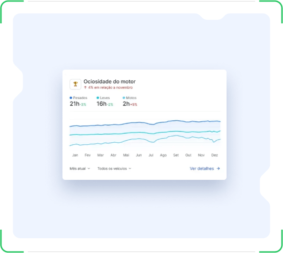 Você pode acompanhar os dados do tempo da ociosidade do motor dos veículos.